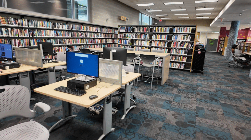 館内には多くのパソコンが設置されているので自由に使えるのはいいですよね。